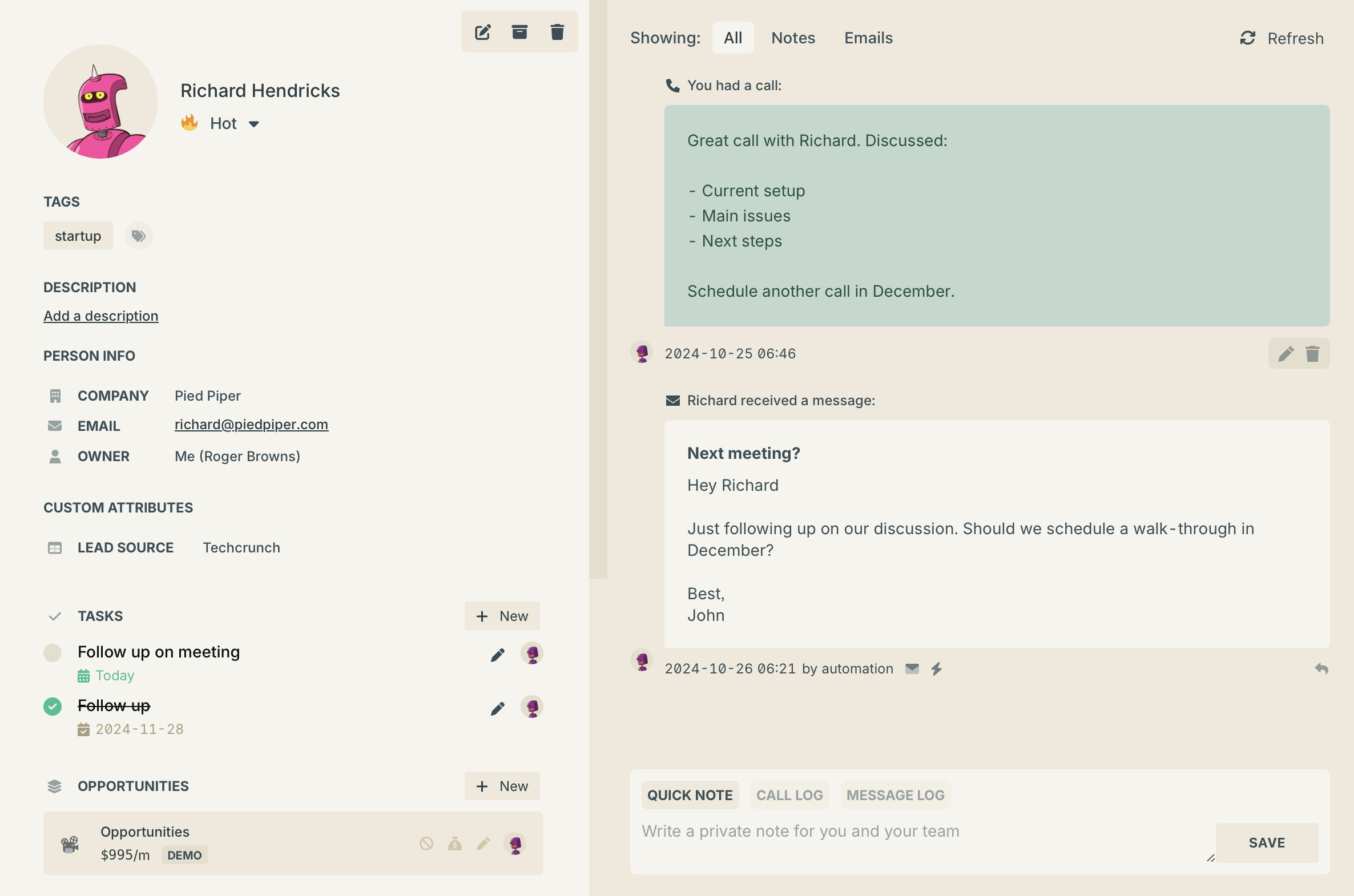 Why make another CRM? Well, there are a gazillion of CRM systems out there and I've personally tried many of them. While some of them may be a great way for managers to track things, few help you be more productive in sales. What? Yep, and that's because they focus on the wrong things, such as advanced report sheets, complex user and contact hierarchies, website builders and 97 other things you don't need.
